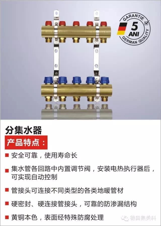 在集美科的展臺,您將了解到集美科在供暖領域豐富多元的產品:PE-Xc聚乙烯輻射交聯耐高溫管、電子溫控面板、智能降溫系統、混水系統以及各類功能閥。