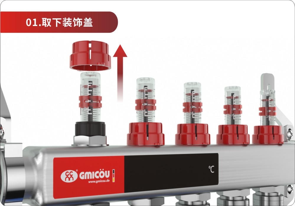 德國集美科分水器流量計,具有操作方便,可靠性高,外觀美觀,能夠精準控制每路管子流量,可以把每一路的流量調成一致的刻度,這樣每一路的水流量都會均衡,從而降低能耗,達到節能的目的。