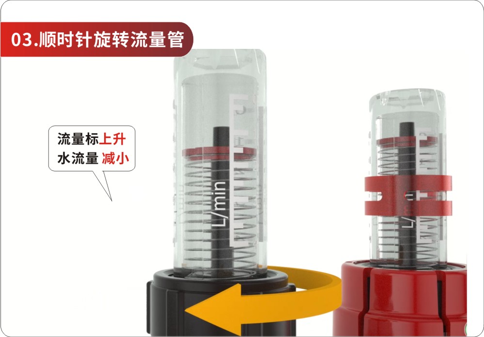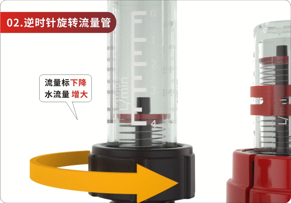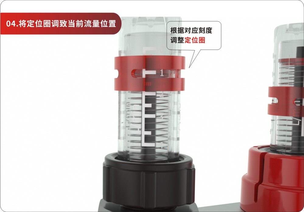 用拇指和食指旋轉流量管,來調節流量的大小。