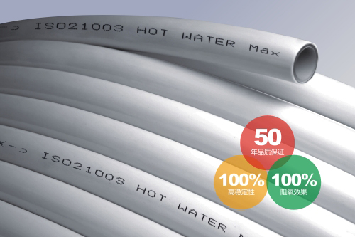管材采用高密度聚乙烯(HDPE)材料制成,具有更高的耐高溫性能和抗壓強度。經過交聯工藝的PE-X復合管可以在95℃的溫度下長期使用,使用壽命可以得到50年以上的保證,特別適合應用于高溫條件的散熱器采暖(70℃以上)系統的連接。