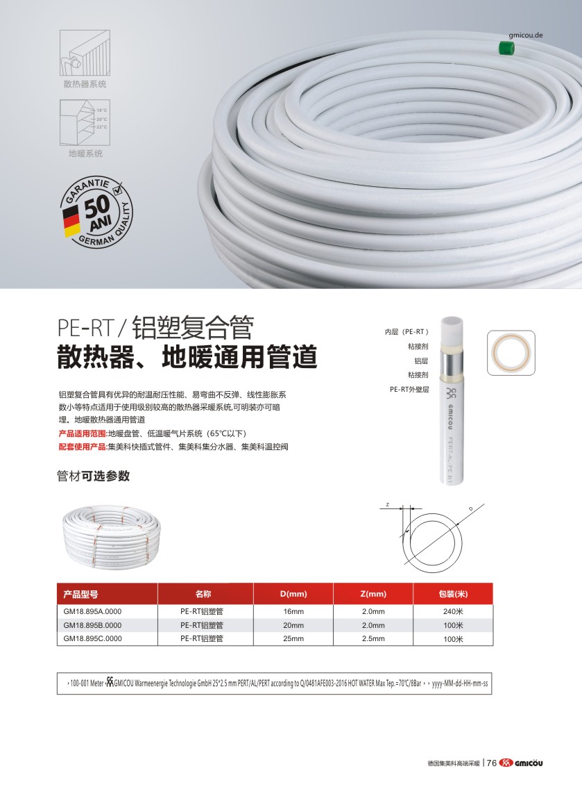 GM18.895A.0000 | PE-RT鋁塑管 | 16mm | 2.0mm | 240米 |