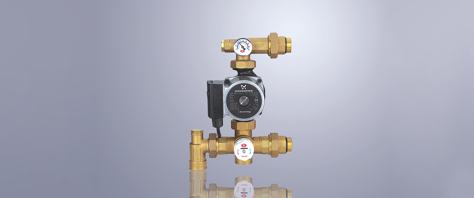 壁掛爐產(chǎn)出的高溫?zé)崴M入到混水系統(tǒng),通過循環(huán)泵的作用,使地暖系統(tǒng)的回水一部分回到混水系統(tǒng)中,與壁掛爐產(chǎn)出的高溫水混合之后,進入地暖系統(tǒng)采暖。液體溫包通過感溫探頭感應(yīng)混合后的水溫,調(diào)節(jié)溫控閥。若混水溫度高于設(shè)定的溫度(如55℃),則液體溫包自動膨脹,產(chǎn)生壓力使溫控閥的閥門關(guān)小,減少壁掛爐高溫水進入混水系統(tǒng)的水量;若混水溫度低于設(shè)定的溫度(如55℃)。則液體溫包自動收縮,使溫控閥閥門開度更大,增加壁掛爐高溫水進入混水系統(tǒng)的水量,通過這種自動化的調(diào)節(jié),使水溫穩(wěn)定的達到地暖采暖的要求溫度。